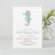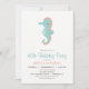 Nautical Seahorse birthday party invitation. Invite features coral and aqua colour seahorse.
