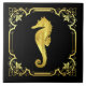 Nautical seahorse silhouette/gold/black tile
