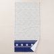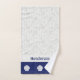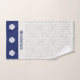 Add a upscale touch to your coastal decor style bathroom with these bath linens printed with a colour palette of navy blue, light grey and cream that you can personalize with your own name and monogram. Subtle damask pattern with navy contrasts is accented with cream colour shells. Choose the set or individual items in the dropdown menu.. See the bath mat or other coordinating items in this same design collection on Zazzle.