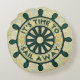 Whether you're the captain of a ship, boat or yacht or you just love the sea and sailing, this beautiful nautical seafarer round pillow design in green is perfect for you. New but with a vintage look, this design features a dark-green wooden-looking helm / ship's wheel with 12 spokes and the words "It's Time to Sail Away."