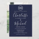 Featuring a ship's knot and signature style names, this elegant nautical wedding invitation can be personalized with your information in chic white lettering on a navy blue background with your chosen photo on the reverse. Designed by Thisisnotme©