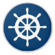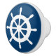 Nautical ship wheel door and drawer pull knobs or handles. Maritime / beach theme design with navy blue blue and white background colour. Customizable background colour. Old boat helm icon. Make your own sailing / ocean themed interior. Fun DIY accessories for home and office. Great for beautiful seaside / coastal kids room, kitchen, bathroom, bedroom cabinets, nursery, baby room, children's play room etc.