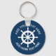 Nautical ship wheel keychains with custom text. Navy blue and white boat helm logo with curved text template. Fun party favour supplies and accessories for Birthday party, beach destination wedding, bridal shower, baby shower, retirement etc. Add your own name or funny quote. Create your own round button key chain with maritime theme. Also nice for boat captain on sailing / boating trips. Change quantity to get the cheap bulk price.