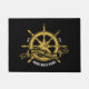 This stylish nautical Black and Gold doormat features a beautifully rendered ship's wheel, a timeless symbol of sailing and adventure. Customize it with your boat's name and establishment date to create a unique and personalized welcome for guests.