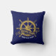 Nautical Ship Wheel Welcome Aboard Navy Blue Gold Throw Pillow