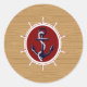 Nautical Ships Wheels Anchor on Wood Grain Classic Round Sticker
