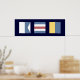 International maritime signal flags spell out "ACK", the airport designation of Nantucket Island, in this faded vintage toned version of the true flag colours set against a deep navy blue background. Also available in flags of bright primary colours as well.