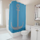 Nautical Silver Grey Anchor on Blue Shower Curtain