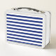 Nautical Silver Star Design on Stripes Metal Lunch Box