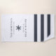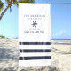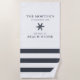 Nautical beach towel features a starfish and stripes design. Personalize the custom text with a family last name and beach house (or other title) with the year established and location. Hale navy blue and white colour scheme.