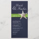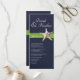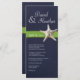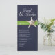 Give your wedding table scape a fresh and nautical feel with this navy menu embelished with green ribbon and a white armoured starfish