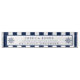 A stylish desk nameplate featuring a nautical theme. It includes bold navy and white stripes running vertically down the top. Towards the centre, your information is flanked by two ship wheels completing the nautical look.