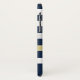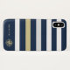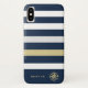 Nautical phone case with stripes in various colours of teal, navy blue, coral and gold with compass at the bottom and your own monogram