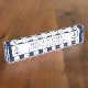 A stylish desk nameplate featuring a nautical theme. It includes bold navy and white stripes running vertically down the top. Towards the centre, your information is flanked by two anchors completing the nautical look.