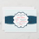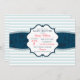 A nautical-theme invitation with a light blue and white stripe background, a navy blue rope-edged centre and a decorative panel that holds your party details. Perfect for showers, birthdays, anniversaries and more. (<a href='http://www.freepik.com/free-vector/nautical-striped-background-with-several-marine-animals_984466.htm'>Designed by Freepik</a>). <br/><br/>The card is easy to customize with your wording, font, font colour and choice of six paper types.<br/><br/>Not exactly what you're looking for? All our products can be custom designed to meet your needs at no extra charge.<br/><br/>Simply contact us at askcottonlamb@gmail.com<br/><br/>Coordinating products available: