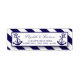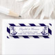 The design features a whimsical navy blue anchor motif on a nautical navy and white striped background.