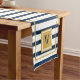 Nautical Stripes Navy Blue Monogram Initial Short Table Runner