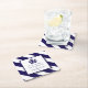 Nautical Stripes & Navy Blue Ship Wedding Square Paper Coaster
