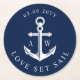 Nautical Theme Anchor Custom Monograms Navy Round Paper Coaster