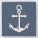 A trivet with a unique nautical theme. It features an anchor centred in the middle in a vibrant navy and white colour scheme.