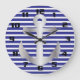 Nautical Theme Blue Stripes Pattern Anchor Large Clock