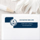 Nautical themed design with anchor and laurel wreath decoration over blue and white geometric background