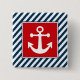 Nautical themed design with anchor decoration in square on blue and white striped background