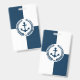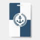 Nautical themed design with anchor and laurel wreath decoration over blue and white geometric background