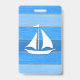 Nautical themed design with sailing boat decoration on striped blue and grey wooden background. Please note this is not made of wood, it is a wood graphic print.