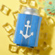 Nautical themed design with anchor decoration on striped blue and grey wooden background. Please note this is not made of wood, it is a wood graphic print.