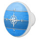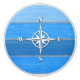 Nautical themed design with compass decoration on striped blue and grey wooden background. Please note this is not made of wood, it is a wood graphic print.