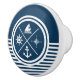 Nautical themed design with nautical symbols (anchor, sailing boat, sailing wheel, compass) decoration on white and navy blue striped background.