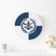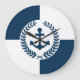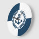 Nautical themed design with anchor and laurel wreath decoration over blue and white geometric background