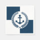 Nautical themed design with anchor and laurel wreath decoration over blue and white geometric background