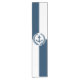 Nautical themed design with anchor and laurel wreath decoration over blue and white geometric background