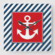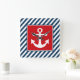 Nautical themed design with anchor decoration in square on blue and white striped background