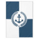 Nautical themed design with anchor and laurel wreath decoration over blue and white geometric background