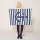 Nautical themed gifts - fleece blanket with navy blue stripes and anchor printed on white background.