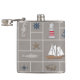 Nautical themed illustration with sea horse, sailing boat, sailing wheel, anchor, lighthouse, fish, seashell, starfish and compass decoration in rectangles on grunge sandy background