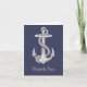 Blue and ivory nautical themed wedding thank you note card, done in blue with vintage artwork of an ivory coloured ship's anchor with rope, on the front. Personalize the text inside and out, to suit your needs. Matching wedding products are available.