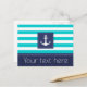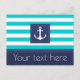 Nautical Turquoise Navy Blue Striped Anchor Custom Postcard