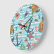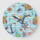Nautical Turtles Seagul Starfish Pattern Large Clock