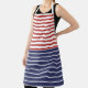 If you are looking for a simple, elegant, minimal stripped nautical themed ship inspired apron then this apron is a right choice. The beautiful navy blue and bright red against white base layer is a perfect colour theme for boat and ship lovers.