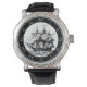 A detailed image of a vintage sailing ship with its sails unfurled with a Roman numeral dial, giving the watch a retro yacht nautical look.