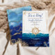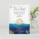 This baby shower invitation features nautical elements like an anchor, watercolor ocean splashes, a starfish, and gold accents. Created for a boy baby shower, this invitation is sure to impress your guests. Designed in shades of navy blue, white, and gold. Shown here for a boy but can be personalized for any gender.