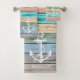 Nautical Weathered Colourful Beach Wood Anchor Bath Towel Set
