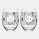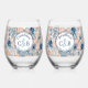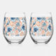 Nautical Wedding Beach Seashell and Roses Stemless Wine Glass