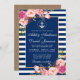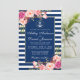 Nautical Wedding Blue Stripes Floral Pink Invite B