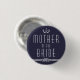 Round nautical wedding buttons - Mother Of The Bride - with white anchor and customizable white text printed on navy blue background with anchor pattern