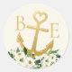 Cute and elegant gold anchor with a heart at the top nestled into a boho floral bouquet with "anchored in love" on a sticker so easy to personalize for your nautical theme bridal shower or cruise wedding. It's a traditional preppy nautical style with an elegant twist, suitable for a formal coastal wedding or casual bridal shower.
